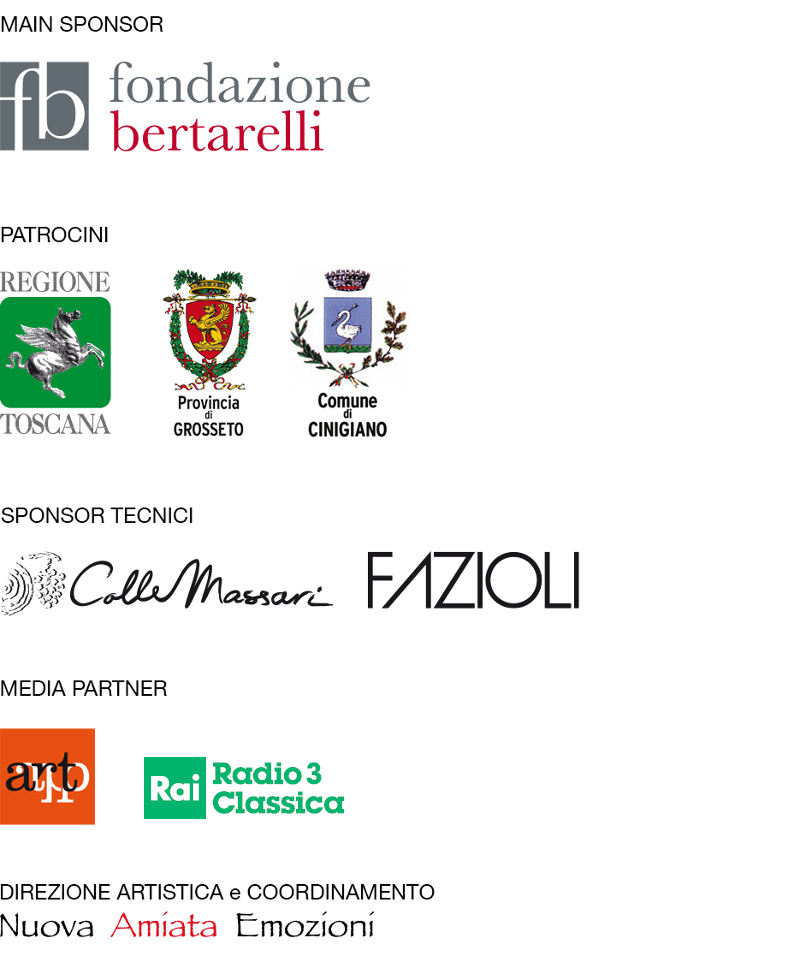 Amiata Piano Festival è organizzato dall’Associazione Nuova Amiata Emozioni con il sostegno della Fondazione Bertarelli.